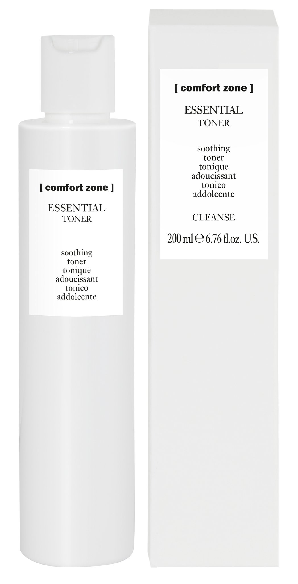 Alcoholvrije, herbalancerende toner van Comfort Zone uit de Essential line, ideaal om het reinigingsritueel mee af te sluiten, omdat het de correcte hydratatie herstelt en de weefsels revitaliseert. Ideaal voor dagelijks gebruik en voor ieder huidtype.